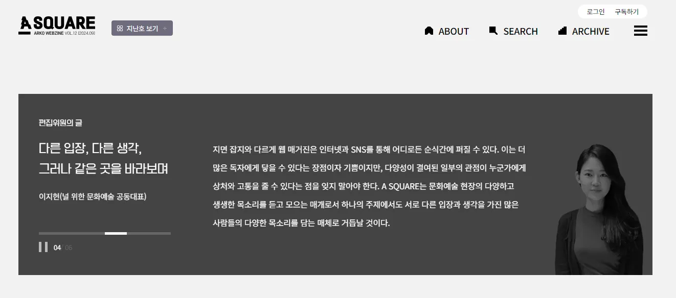 안녕하세요. 예술이 세상을 바꿀 수 있다고 믿는 예술옹호론자 이지현입니다.